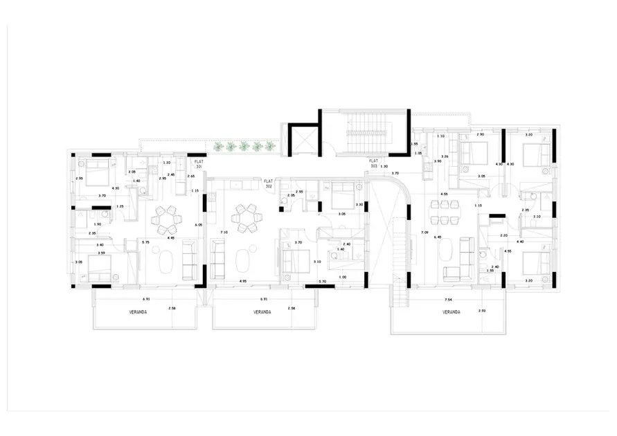 Each apartment features an open-plan kitchen, living, and dining area that extends seamlessly onto a spacious private balcony. Abundant natural light and well-proportioned ceiling heights enhance the architectural clarity of each space, creating an elevated living environment defined by comfort, openness, and contemporary elegance.